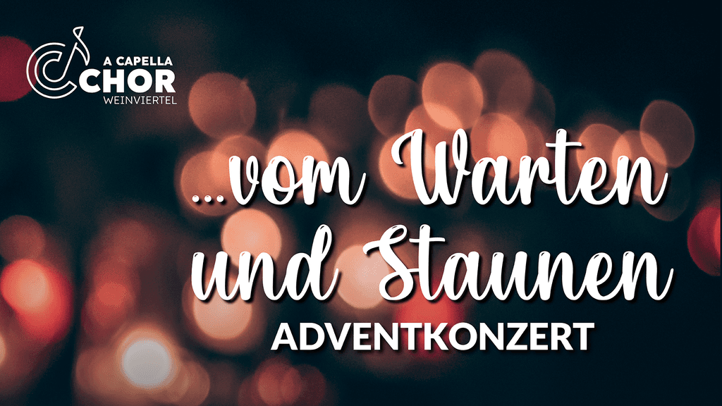 … vom Warten und Staunen ADVENTKONZERT  INFO ZUM PROGRAMM  AUFFÜHRUNGSTERMINE  VERANTWORTLICHE  KARTENVORVERKAUF  TICKETPREIS INFO ZUM PROGRAMM: Die Adventzeit ist eine Zeit des Innehaltens, der Erwartung und der Vorfreude, eine Zeit, geprägt vom Warten und Staunen. Unter diesem Titel lädt der A-Capella-Chor Weinviertel zu einer besonderen Stunde mit einem stimmigen Programm, das sich zwischen traditionellen Adventliedern und modernen Kompositionen entfaltet. Feierliche und sphärische Chorklänge treffen dabei auf eindrucksvolle Texte und überraschende Wortbilder, die durch die Moderation und den Poetry Slam von Katharina Wenty neue Perspektiven auf die Adventzeit eröffnen – mal leise und besinnlich, mal kraftvoll und lebhaft. Inmitten der Hektik der Vorweihnachtszeit bietet diese Stunde Raum zum Lauschen, Staunen und zur Begegnung – mit Musik, Sprache und dem Geheimnis von Advent und Weihnachten. AUFFÜHRUNGSTERMINE: Samstag, 29. November 2025, 17:00 Uhr Einlass: 16:15 Uhr Stadtpfarrkirche Mistelbach Sonntag, 30. November 2025, 16:00 Uhr Einlass: 15:15 Uhr Pfarrkirche Wolkersdorf Die Aufführungsdauer beträgt ca. 1 Stunde (ohne Pause) VERANTWORTLICHE: Musikalische Leitung: Gerhard Eidher Moderation & Poetry Slam: Katharina Wenty Organisation, Obmann: Reinhard Hirtl A-Capella-Chor Weinviertel KARTENVORVERKAUF: EVENTJET www.a-capella-chor.at Über alle Chormitglieder Bürgerservice im Rathaus Mistelbach (Mo, Mi, Do 8 – 15:30 Uhr | Di 8 – 19 Uhr | Fr 8 – 12 Uhr) TICKETPREISE: Eintritt: 15,00 Euro Freie Sitzplatzwahl!