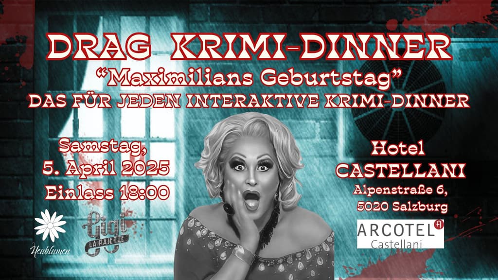 Willkommen zu einem Abend voller Rätsel, Intrigen und atemberaubender Drag-Performances! Beim Drag-Krimi-Dinner „Maximilians Geburtstag“ erwartet die Gäste nicht nur ein exquisites 3-Gänge-Menü, sondern auch ein interaktives Krimi-Erlebnis, das sie selbst mitgestalten.