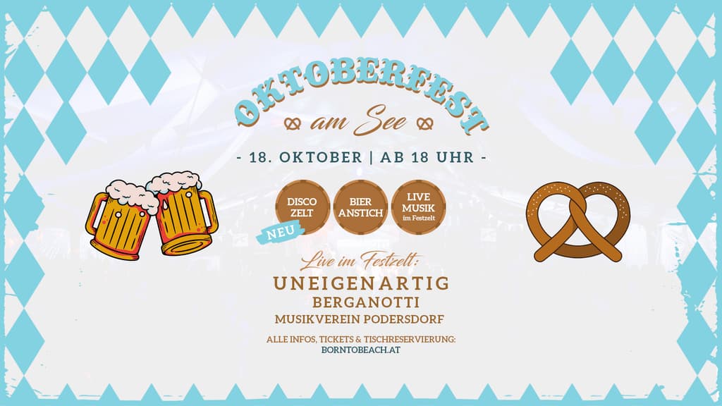 Am 18. Oktober verwandeln wir Podersdorf zum Wiesn-Highlight: Tracht auspacken & feiern wie in Bayern! Feinste Schmankerl, frisch gezapftes Bier, Blasmusik und die Partyband âUNEIGENARTIGâ sorgen fĂŒr bestes Oktoberfest-Feeling pur. Dazu: Bieranstich, MaĂkrug-Challenge & Happy Hour â und NEU: Discozelt ab 21 Uhr!