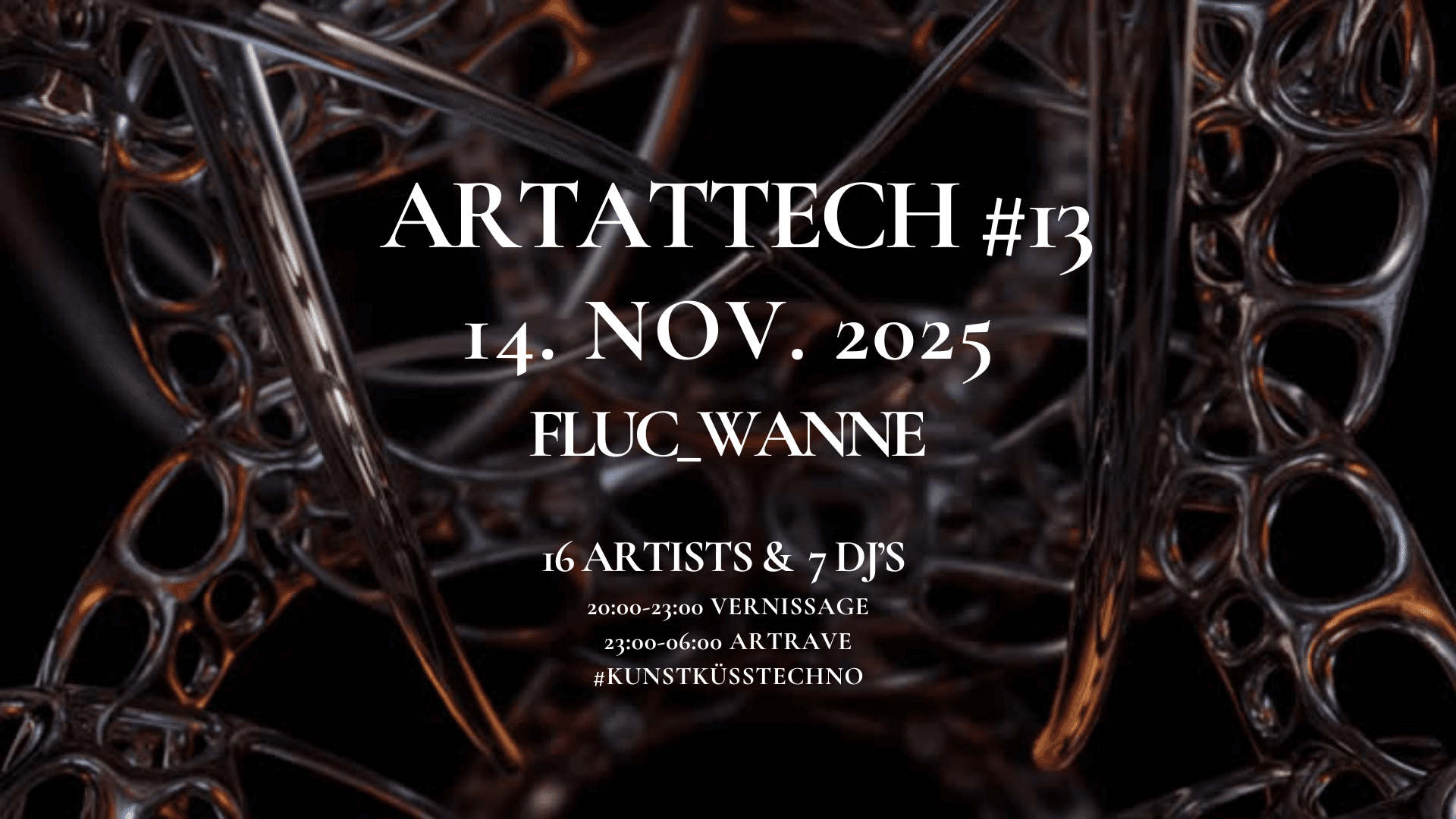 Willkommen zum 13. ART RAVE, wo jede Ecke voller Kreativität strahlt und die Luft vor technoider Energie knistert. Lass dich von faszinierenden Kunstwerken talentierter Künstler*innen verzaubern und sei dabei, wenn beim Live Painting Farben zum Leben erwachen!