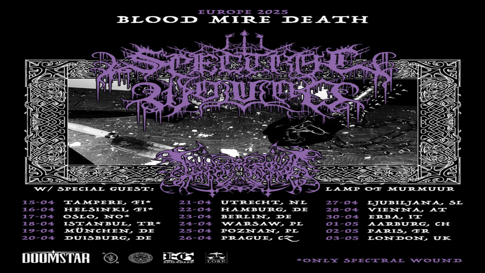 Spectral Wound play black metal. Furious and visceral, untrammelled by esoteric posture or grasping idealism, it is music for the poisoned, the futile, the debauched and profane. The blooming of a flower of corruption, torn by cold winds. Following the raw early offering of Terra Nullius (Arcane Angels/Out of Season 2015) Spectral Wound continued their path of creeping, opulent decay and searing melody, weaving strands of Métal noir Québécois with the weft of the Scandinavian canon. Refining its sound over Infernal Decadence (Vendetta, 2018) and the towering, exultant melancholy of A Diabolic Thirst (Profound Lore, 2021), with SONGS OF BLOOD AND MIRE (Profound Lore 2024) the band delivers an elegy of the void, seething with the venom and clamour of an ever-emptying world.