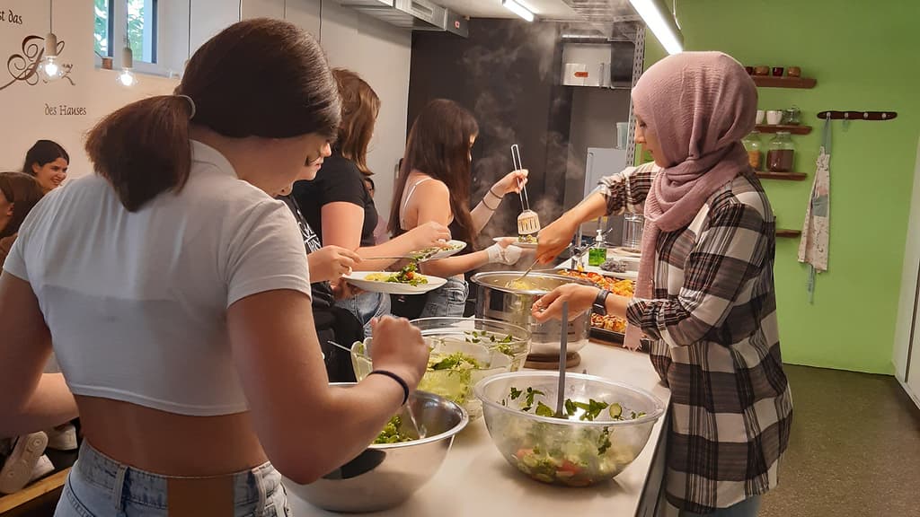 Wir kochen zusammen und lernen die Zubereitung von Essen verschiedener Kulturen kennen.