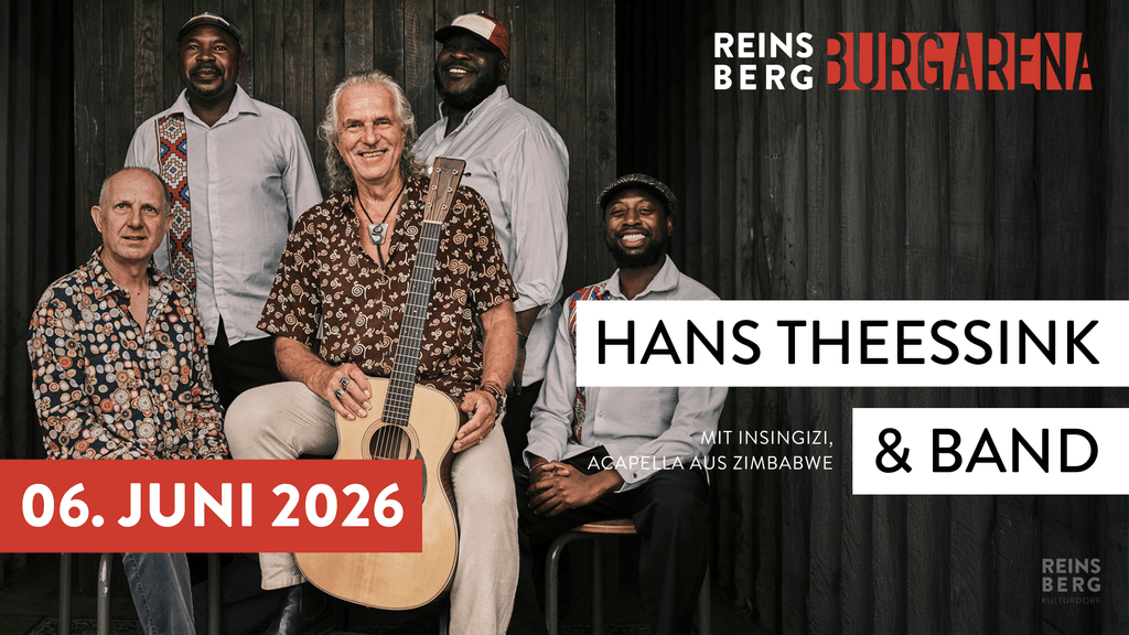 Hans‘ Bühnenpräsenz und Ruf als Entertainer und authentischen Saitenzauberer, unterstützt vom gefühlvollen Tastenvirtuosen Roland Guggenbichler und die 3 afrikanischen Sänger von Insingizi aus Zimbabwe – mit ihren unnachahmbaren Stimmen, mitreißenden Percussion und herrlichen choreographischen Einlagen, machen jedes Konzert der Hans Theessink Band zu einem einmaligen Erlebnis mit einer Intensität, die sofort die Funken zum Publikum überspringen lässt und sie elektrifiziert!