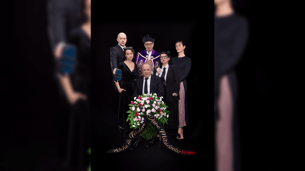 Schnell hat Hubert, der neue „Alte weiße Mann“ an der Spitze, nicht nur seine Marketing-Leiterin, den Social-Media-Chef und seine Sekretärin gegen sich, sondern auch die sehr selbstbewusste Praktikantin. Vor dem Theaterpublikum als versammelter Trauergemeinde zerfleischt sich in diesem hochpointierten Stück schließlich die Führungsetage der Firma immer mehr. Nicht einmal der verzweifelte Pfarrer kann die Wogen glätten.