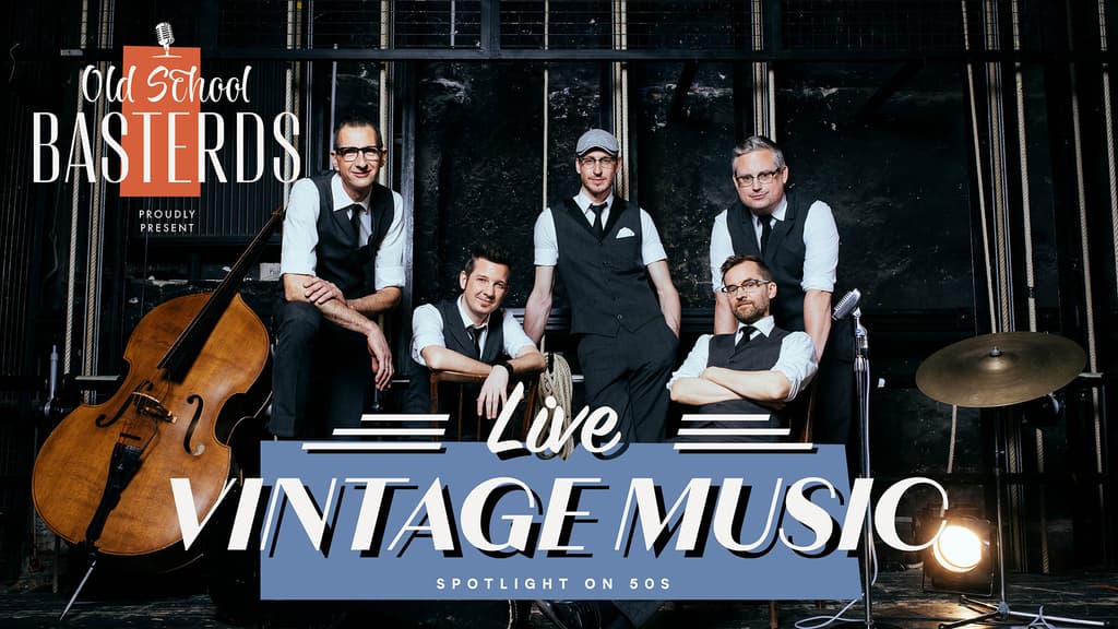 Feiern Sie gemeinsam mit den fünf Musikern die Vielfalt handgemachter Vintage Music! Lassen Sie sich von den OldSchoolBasterds in die Zeit des Rock‘n‘Roll von Chuck Berry, dem swingenden Piano von Fats Domino, dem Hüftschwung von Elvis Presley, der Energie von Little Richard, dem Soul eines Ray Charles, den knackigen