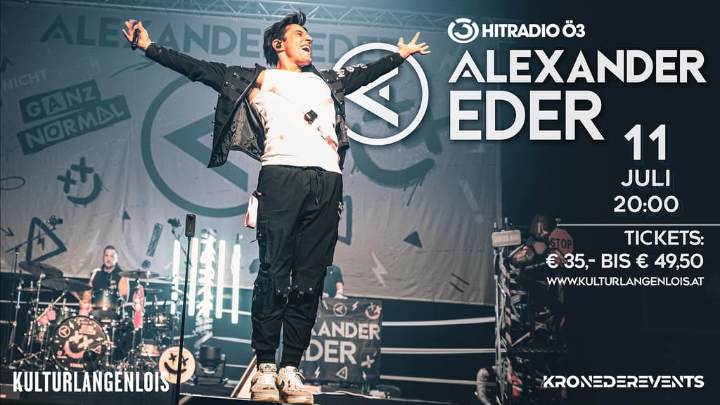 ALEXANDER EDER, der Shooting-Star der deutschsprachigen Popszene. Mit seiner einzigartigen, tiefen Stimme und unverkennbaren lockeren Art hat der 25-jährige Künstler eine unglaublich große Fangemeinde um sich versammelt. Seine Musik ist mehr als Unterhaltung - sie ist ein lautes JA zum Leben. Mit seinem zweiten Studioalbum GANZ NORMAL präsentiert Alexander Eder eine faszinierende Bandbreite an Themen und musikalischen Facetten.