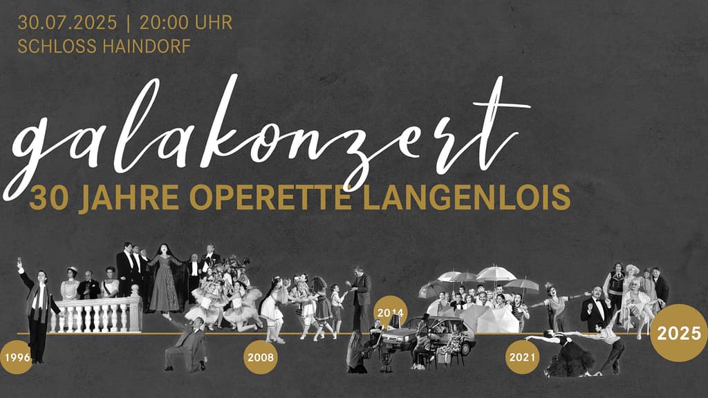 Am 30. Juli präsentiert Intendant Christoph Wagner-Trenkwitz ein Galakonzert mit Höhepunkten aus Werken, die bislang vor Schloss Haindorf aufgeführt wurden. Darunter ZWEI HERZEN IM DREIVIERTELTAKT von Robert Stolz, mit dem 1996 alles begonnen hat, weiters Klassiker wie IM WEISSEN RÖSSL und DIE CSÁRDÁSFÜRSTIN sowie reizvolle Raritäten wie GASPARONE und DAS DREIMÄDERLHAUS.