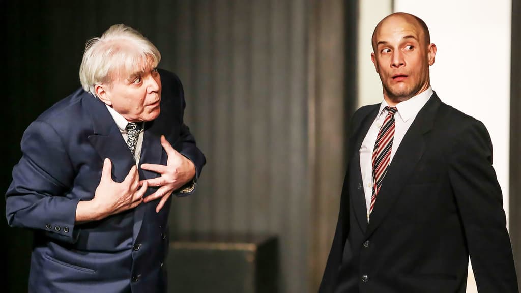 Zwei Herren werden in Säcken von Unbekannten in einem Raum abgeladen. Schließlich stellen sie fest, dass sie den Raum nicht verlassen dürfen, während die Türe zum Ausgang weit offen steht.