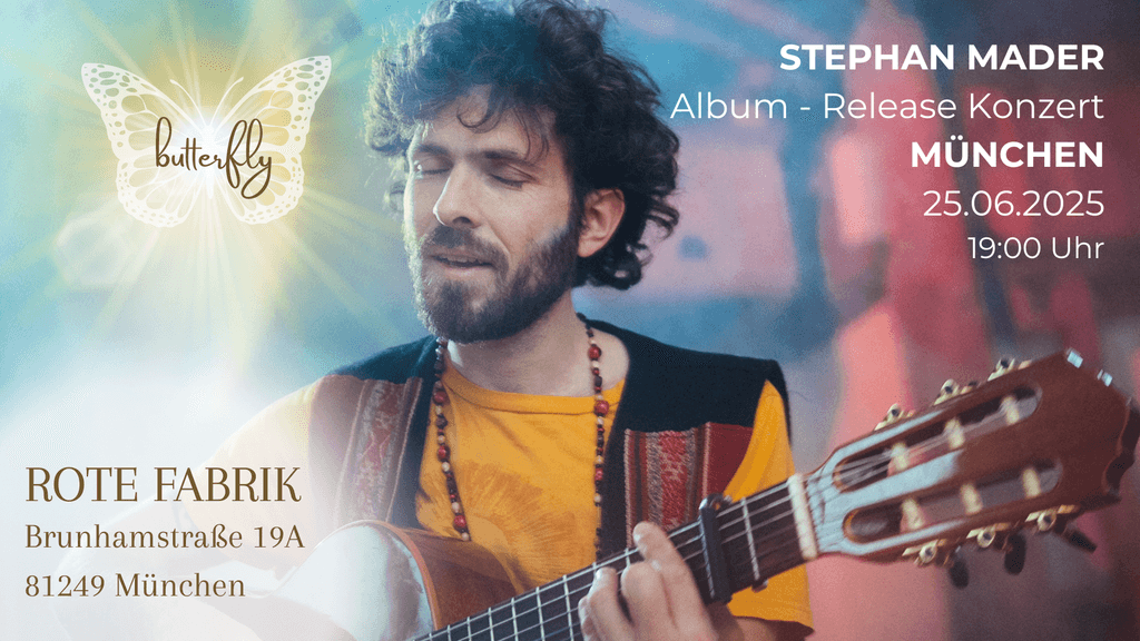 am 25.06. findet in München in der wundervollen Roten Fabrik das Album Release Konzert für mein neues Album BUTTERFLY statt. Auf diesen Moment freu ich mich schon lange und ich freu mich riesig, dass auch du mit dabei bist! Begleitet werde ich auf der Bühne u.A. von meinen lieben Freunden Omaris und Yogi.