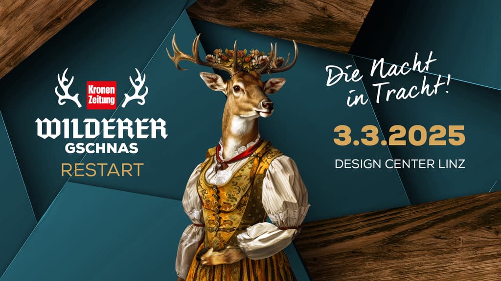 Am 3. März 2025 wird das Design Center Linz zum Hotspot alle für Trachtenliebhaber – beim RESTART des KRONE-WILDERER GSCHNAS! Erlebe einen unvergesslichen Abend, wo Tradition auf Party trifft und auf dem Parkett ordentlich Gas gegeben wird.