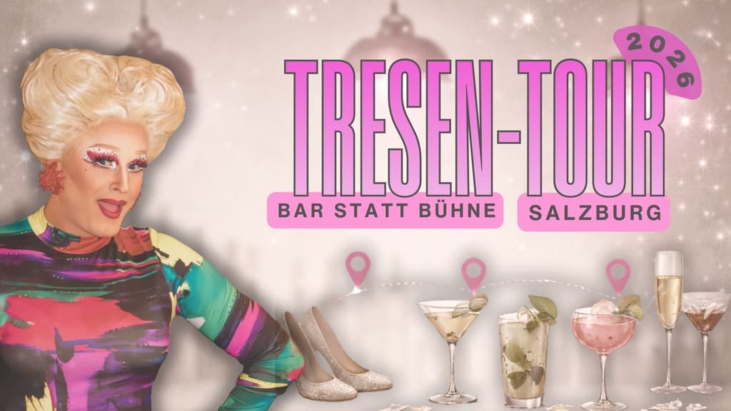Begleitet wird der Abend von keiner geringeren als Drag Queen Gigi La Pajette, die Salzburgs Nachtleben mindestens genauso gut kennt wie ihre eigenen High Heels. Unterstützt von der ebenso glamourösen & schlagfertigen Gastqueen Tiffy Tölle, die aus dem Nähkästchen plaudert, als gäbe es kein Morgen.