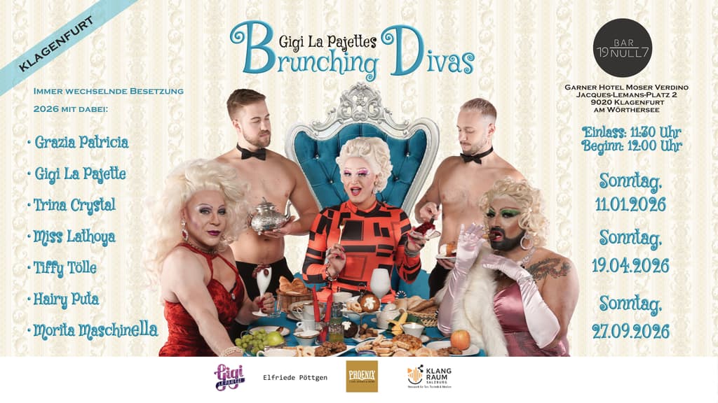 Nach dem überwältigenden Erfolg des allerersten Drag Brunches in Klagenfurt startet nun die glitzernde Event-Reihe „Brunching Divas by Gigi La Pajette“ offiziell durch!