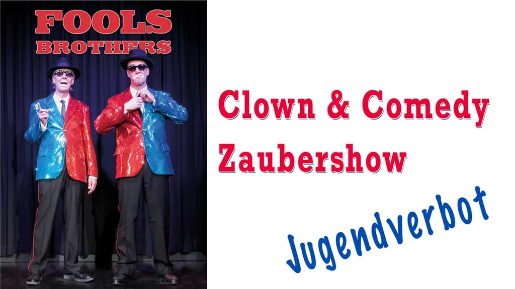 Exzentrisch mitreißendes und außergewöhnlich neues Comedy- und Clown-Show-Spektakel! – strengstes Jugendverbot! Die weltweit unbekannten FOOLS BROTHERS unter der Regie von Clown-Legende JANGO EDWARDS spielen ihre aktuelle Show ON A MAGICAL MYSTERY DETOUR endlich wieder in Wien! Erleben Sie erfrischende Dummheit und Zauberkunst der Extraklasse ... man könnte sagen Clown und Comedy Magic, wie Sie diese noch nie gesehen haben! Die Brüder Lio und Liam Fool präsentieren in ihrer Show internationale Stargäste! Das sind beispielsweise der wundersame Fakir Ali Bamba, der Gedankenleser Dr. Dam Mad, der Arzt Dr. Charles Camel, der Showmaster Kyrill Karassovic, die Sängerin Que Sarah oder der mysteriöse Swandini, der in Wahrheit eigentlich nur ein dummes Huhn ist! ... Übrigens müssen aus Kostengründen all diese Künstler von den beiden Brüdern selbst dargestellt werden! Sie werden 100 Minuten lang staunen, sich unterhalten, vielleicht etwas entsetzt sein, applaudieren und ... vor allem aber … viel lachen! Genau darum geht es den Fools Brothers. Ihr Lachen sollten Sie viel öfter einsetzen! Es macht unsere Welt ein kleines Stück lebenswerter! ... Die Welt braucht Clowns! ... oder „All you need is laugh!“ ;-)