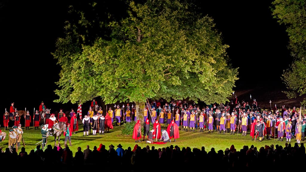 Die Aufführungen finden nur etwa jedes 2. Jahr auf der größten Naturbühne Europas statt. 500 LaiendarstellerInnen und weitere 300 HelferInnen garantieren ein beeindruckendes Schauspiel.
