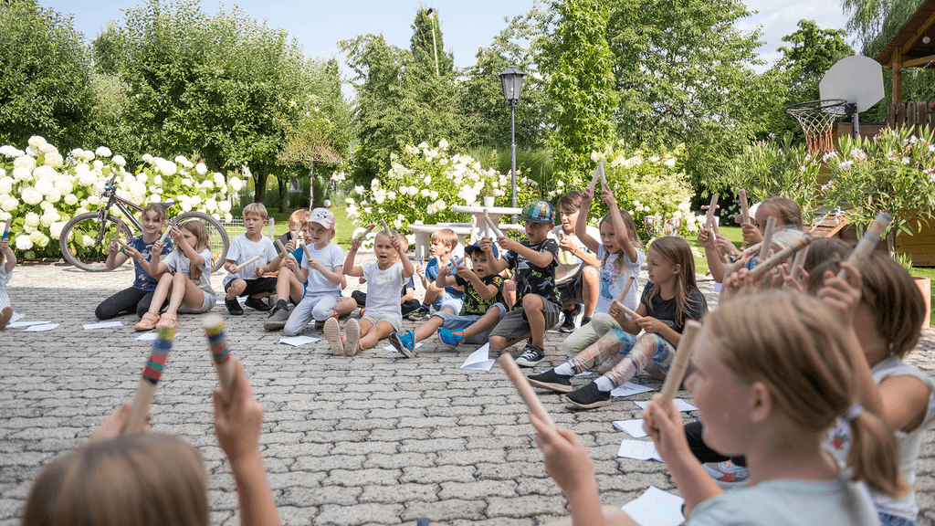 Bunter Nachmittag mit Singen & Musikzieren, lustigen Spielen, Bewegung, musikalischer Rätselrallye und Würstelgrillen am Lagerfeuer.