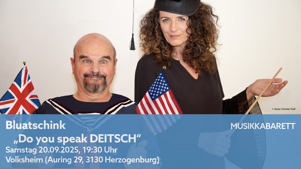 Das neue Programm von BLUATSCHINK „Do you speak DEITSCH“ verspricht wieder jede Menge Humor und viele bezaubernde Melodien. Heiter-Witzig-Luschtiges im Lechtaler Dialekt. Wenn man vor mehr als 30 Jahren ein Musikprojekt aus der Taufe hebt, nach einem Fabeltier benennt und dann auch noch im ureigenen Lechtaler Dialekt singt – dann ist klar, dass „Sprache“ von Anfang an auch ein Thema ist. Gelegentlich wurde, wenn ihre Lieder im Radio fern der Lechtaler Heimat erklungen sind, die Frage gestellt: „Warum singen die Chinesisch?“.
