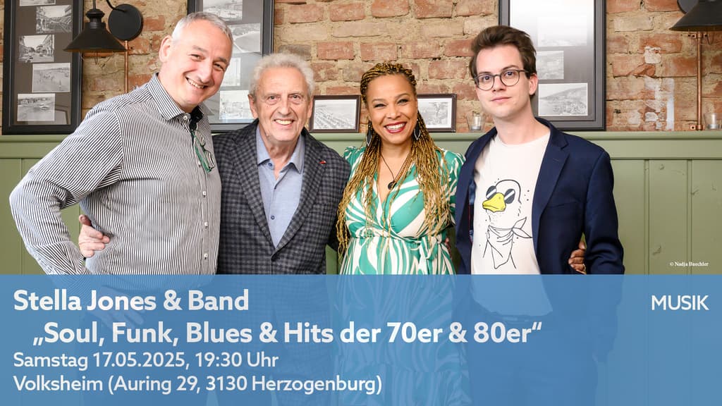 „MISS BLACK VOICE“ Stella: die gebürtige Berlinerin und Wahl-Wienerin Stella Jones ist das, was man eine Vollblutmusikerin nennt. Sie ist eine der gefragtesten Sängerin im In- und Ausland. Sie arbeitet mit internationalen Stars, sowie seit vielen Jahren ua on Tour mit Andreas Gabalier, wo sie auch einige Solo-Titel singt. Weiters mit KünstlerInnen wie Right Said Fred, Helene Fischer, MTV Unplugged, Andreas Gabalier, Xavier Naidoo, Gregor Meyle, Max Giesinger, Conchita Wurst, Nina Hagen, Marianne Faithful, Omara Portuondo, Chaka Khan, Wolfgang Ambros, Rainhard Fendrich, Bill Ramsey, ORF-Dancing Stars Big Band uvm. Peter Strutzenberger: ist einer der vielseitigsten Bassisten und tourt seit vielen Jahren um die Welt, so wie auch viele Jahre mit Jose Feliciano und ist in Österreich mit heimischen Künstlern unterwegs. Max Tschida: ein gefragter Pianist bei nationalen u. internationalen Produktionen. Konzerte in Frankreich, Italien – bis Brasilien. Rudi Steager: der „Trommler“ – spielte schon Schlagzeug mit 11 Jahren und gibt auch Unterricht am Konservatorium der Stadt Wien. Mit 22 Jahren war er unterwegs mit der Fatty George Crew und ist ebenfalls Mitglied der Gruppe Spinning Wheel (Falco)