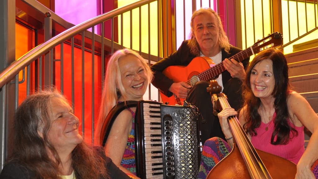 Nach nunmehr 30 Jahren Entdeckungsreise durch musikalische Welten entwickelt LIBERTANGO eine ganz eigene,unverwechselbare musikalische Sprache, die geprägt ist von Lebendigkeit, Spontanität und Spielwitz. Jede Musikerin, jeder Musiker schöpft aus seinem breit gefächerten und vielschichtigen Repertoire. Das Programm von Libertango verzaubert mit Kompositionen, die das Publikum auf eine Klangreise, inspiriert vom Schwung des Jazz Manouche, von der Erotik des Tango Argentino oder vom Feuer des Flamenco mitnehmen! Erfahrung, Temperament und die Leidenschaft für Improvisation versprechen ein unvergessliches Erlebnis. Das intensive, jahrzehntelange Zusammenspiel erlaubt das Eintauchen in ungeahnte und berührende Momente. Sabine Linecker - Kontrabass, Gesang Sigrid Gerlach - Akkordeon, Gesang Michael Brandl - Gitarre Geri Sauberer - Schlagzeug