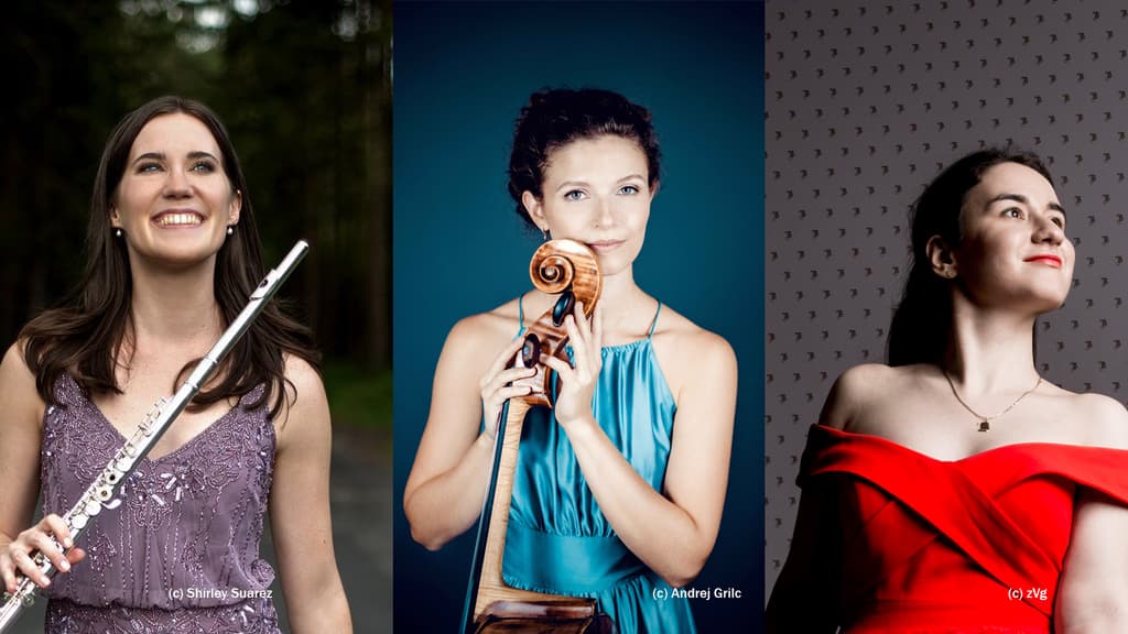 Die Musikerinnen Veronika Blachuta (Flöte), Marilies Guschlbauer (Violoncello) und Adela Liculescu (Klavier) bringen Werke von Louise Farrenc, Joseph Haydn, Bhoslav Martinu und Claude Debussy zur Aufführung.