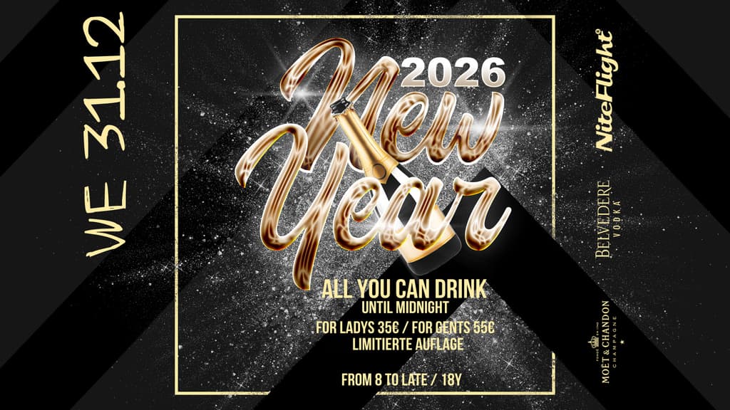 Silvester Wir laden alle Freunde und Stammgäste ein mit uns den Jahresabschluss 2025 und den Beginn 2026 zu feiern, dafür haben wir uns etwas ganz besonderes einfallen lassen: ☆ ALL YOU CAN DRINK until midnight (Ausgenommen Bottles, Schaumwein und Cocktails) ☆ FOTOBOX ☆ Glas Sekt um Mitternacht for Ladys 35€ / for Gents 55€ Streng limitierte Auflage! Dresscode: Glitter & Shine Hol dir hier dein Ticket: https://shop.eventjet.at/niteflight ▌LINEUP ▌ ▬▬▬▬▬▬▬▬▬▬▬▬▬▬▬▬▬▬▬▬▬▬ Artists 1st Floor (NF CLUB) ☆ Nico ☆ Habits ☆ Gary K 2nd Floor (NF LOFT) ☆ NF Residents ▌Specials ▌ ▬▬▬▬▬▬▬▬▬▬▬▬▬▬▬▬▬▬▬▬▬▬ ☆ CO2 Booster ☆ Indoor-Feuerwerk ☆ Konfetti Kanonen ☆ and many more! ▌VIP Packages ▌ ▬▬▬▬▬▬▬▬▬▬▬▬▬▬▬▬▬▬▬▬▬▬ ☆ Gin Lover Package € 269,- - 1x Flasche 1,75l Bombay Sapphire plus 12 Beigetränke (Thomas Henry Tonic oder Thomas Henry Pink Grapefruit oder Makava) - 1x Flasche Moet Imperial Champagner - Begrüßungs Shot - light snacks - VIP Hostess Service ☆ Papas Kreditkarte Package € 365,- - 1x Flasche 1,75l Belvedere plus 12 Beigetränke (Red Bull, Red Bull Editions oder Makava) - 1x Flasche Moet Imperial Champagner - Begrüßungs Shot - light snacks - VIP Hostess Service ☆ Tinder Schwindler Package € 499,- - 1x Flasche 3l Belvedere plus 25 Beigetränke (Red Bull, Red Bull Editions oder Makava) - 2x Flaschen Moet Imperial Champagner - Begrüßungs Shot - light snacks - VIP Hostess Service ☆ Champagne Lover Package € 699,- - 4x Flasche 0,7 Moet NIR - 1x Flasche 1,75l Belvedere NF Edition plus 12 Beigetränke (Red Bull, Red Bull Editions oder Makava) - Begrüßungs Shot - light snacks - VIP Hostess Service - Special Show ☆ Reich wie Scheich Package € 925,- - 1x Flasche 6l Belvedere plus 50 Beigetränke (Red Bull, Red Bull Editions oder Makava) - 2x Flaschen Moet Imperial Champagner 1,5l - Begrüßungs Shot - light snacks - VIP Hostess Service - Special Show ☆ The Parade Package € 995,- - 4x Flasche 1,75l Belvedere NF Edition plus 12 Beigetränke (Red Bull, Red Bull Editions oder Makava) - 2x Flaschen Moet Imperial Champagner 1,5l - Begrüßungs Shot - light snacks - VIP Hostess Service - Special Show ☆ Dom Royal Package € 1399,- - 4x Flasche 0,7 Dom Perignon Luminous - 1x Flasche 1,75l Belvedere NF Edition plus 12 Beigetränke (Red Bull, Red Bull Editions oder Makava) - Begrüßungs Shot - light snacks - VIP Hostess Service - Special Show ▌Entry ▌ ▬▬▬▬▬▬▬▬▬▬▬▬▬▬▬▬▬▬▬▬▬▬ ☆ Doors open at 20:00 ☆ Strictly 18y ☆ Open End ▌Partners ▌ ▬▬▬▬▬▬▬▬▬▬▬▬▬▬▬▬▬▬▬▬▬▬ ☆ Belvedere Vodka ☆ Moet & Chandon ☆ Red Bull Anfragen & Reservierungen: 0720 310552 oder office@niteflight.at ☆ Feiern über den Dächern von Gralla der Sonne entgegen! ☆ Einen anregenden Nachtflug wünscht die NF Crew ▌ protected by PPS-Security ▌