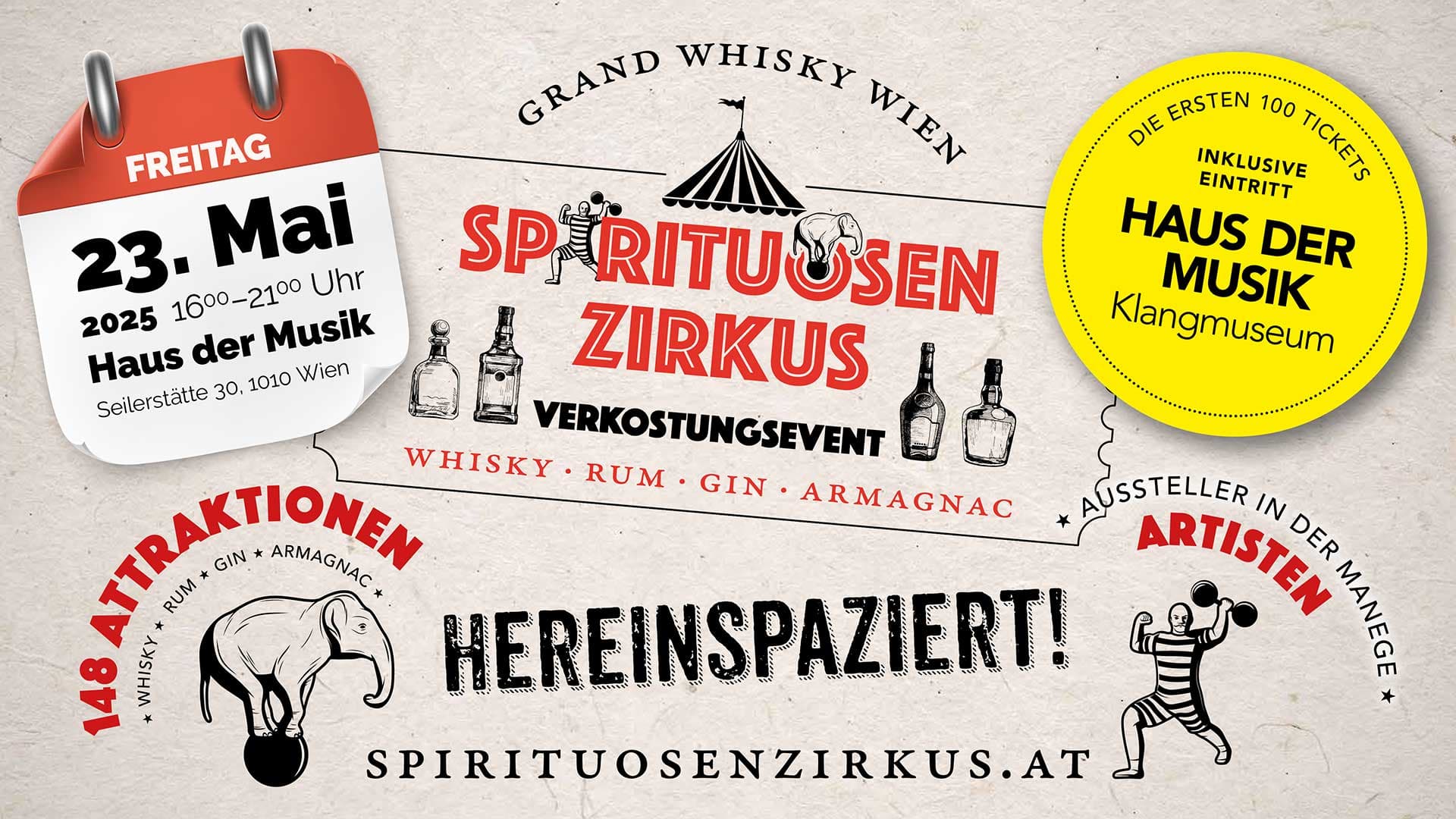 Der Spirituosenzirkus von Grand Whisky ist ein ganz besonderer Event für Spirituosenliebhaber, eine „hochprozentige Liebeserklärung“ an die wunderbaren Aromen edler Spirituosen. 148 spannende Whisky-, Rum, Gin- und Armagnac-Spezialitäten werden zur Verkostung angeboten, die außergewöhnlichen Genuss bieten und einen Einblick in die faszinierend vielfältige Welt der edlen Destillate gewähren.
