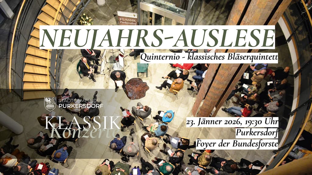Begrüßen Sie den Jahresbeginn mit diesem professionellen und sympathischen Bläser Quintett "Quinternio Wien" im wunderschönen Foyer des Bundesforste-Gebäudes