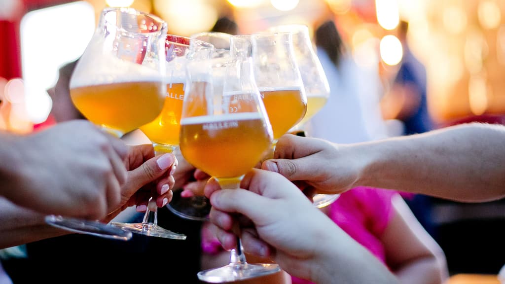 gemeinsam mit einem Biersommelier verschiedene Biere.