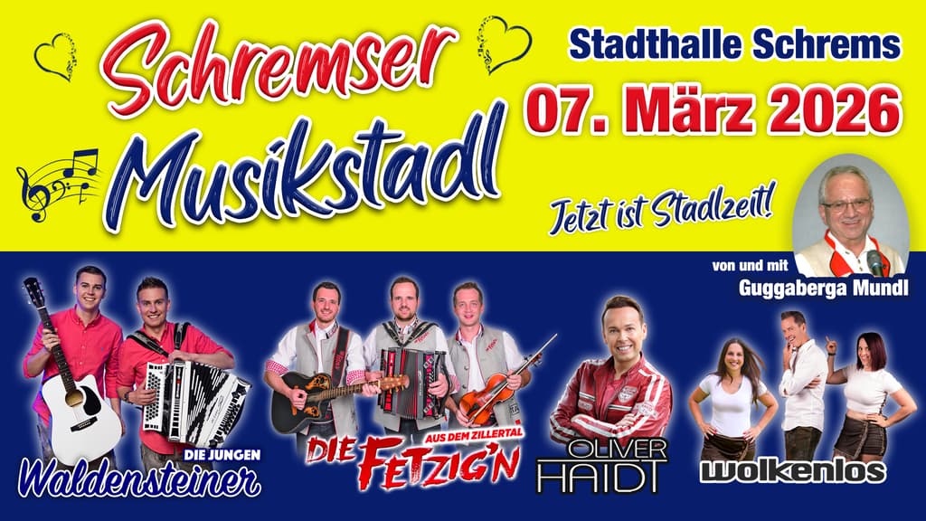 Die jungen Waldensteiner und Guggaberga Mundl präsentieren den legendären Schremser Musikstadl!