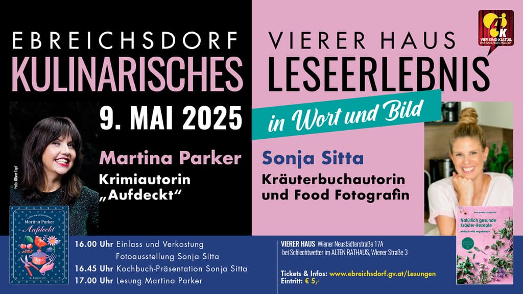 Am 9. Mai präsentieren wir eine Lesung der besonderen Art, bei der Literatur, Kulinarik und Fotografie auf einzigartige Weise miteinander verschmelzen. Wir freuen uns auf die bekannte Gartenkrimi-Autorin Martina Parker und die talentierte Autorin und Food-Fotografin Sonja Sitta. Lassen Sie sich von den köstlichen Kreationen begeistern, die sowohl aus dem Buch von Martina Parker als auch von Sonja Sitta stammen und zur Verkostung bereitstehen.