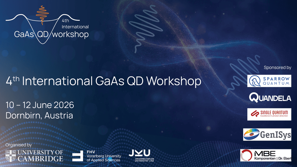 The 4th International GaAs Quantum Dot Workshop will take place in 2026 at the Vorarlberg University of Applied Sciences (FHV) in Dornbirn, Austria. Nestled between the Alps and Lake Constance, this unique location provides the perfect backdrop for inspiring scientific exchange.