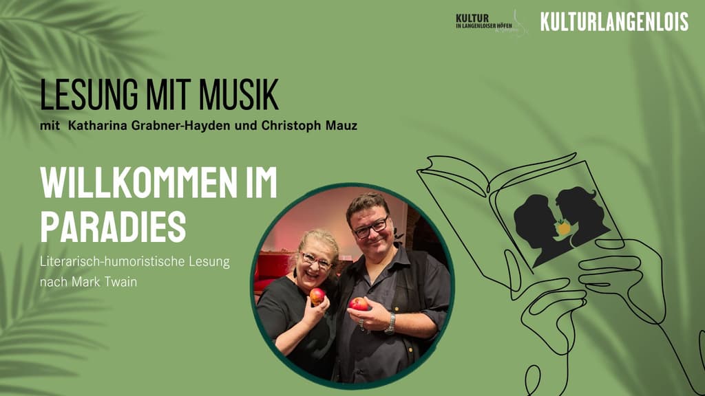 Die bekannten und beliebten Autoren Katharina Grabner-Hayden und Christoph Mauz haben sich die Frage gestellt und sich in das Tagebuch von Adam und Eva vertieft. In ihrer kabarettistischen Lesung " Willkommen im Paradies" entführen sie das Publikum zurück zu den Anfängen der Menschheit, in die Genesis. Das Ende ist klar: Gott und eine listige Influencerin verhelfen den beiden über ihre Unzulänglichen hinwegzusehen und alles findet schließlich doch zu einem Happy End! Auch wenn Adam und Eva dafür in den sprichwörtlichen sauren Apfel beißen müssen.
